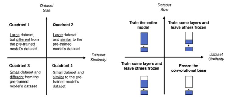 기존에 학습된 모델을 기반으로 아키텍쳐를 새로운 목적에 맞게 변형하고 이미 학습된 모델 Weights로 부터 학습을 업데이트하는 방법을 말한다.