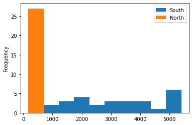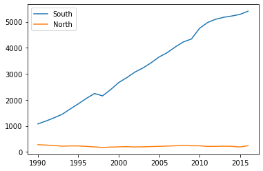 ndf.index=['South','North']