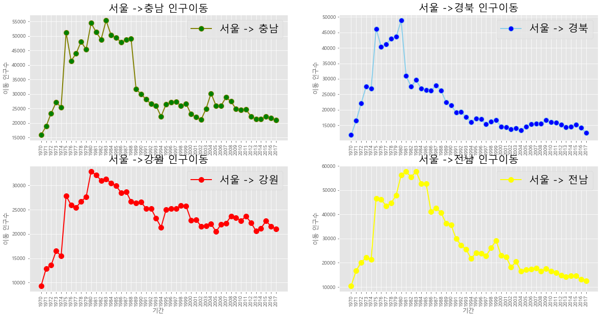 df_seoul.rename(columns={'전국':'전출'}, inplace=True)