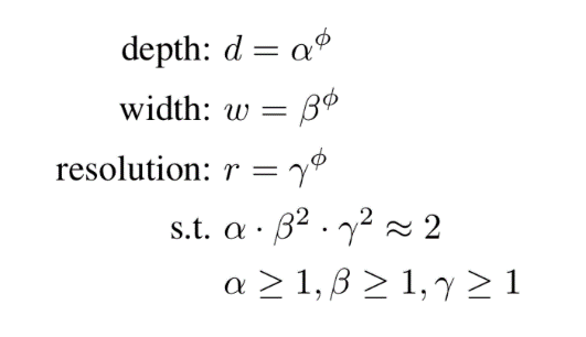 - 네트웍의 깊이(Depth), 필터 수(width), 이미지 Resolution크기를 함께 최적으로 조합하여 모델 성능 극대화