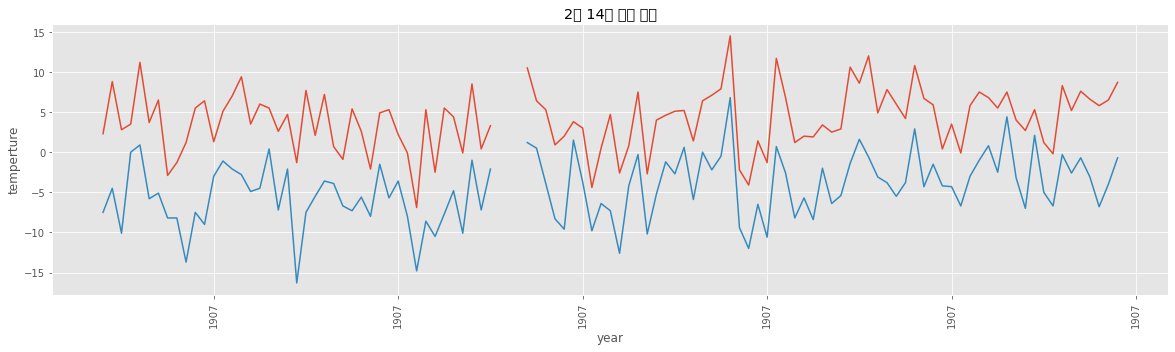 ax.set_title('2월 14일 기온 변화')