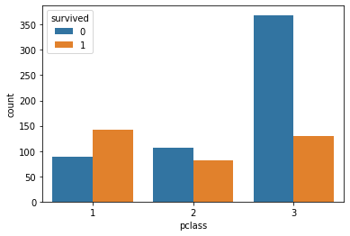 ax = sns.countplot(x='pclass', hue = 'survived', data = df_train)