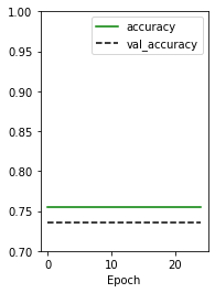 122/122 [==============================] - 0s 4ms/step - loss: 0.5686 - accuracy: 0.7456 - val_loss: 0.5860 - val_accuracy: 0.7362