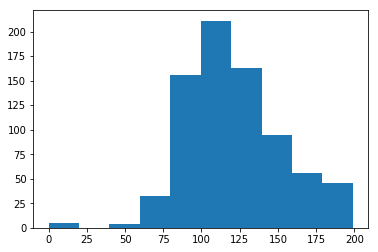 plt.hist(diabetes_data['Glucose'], bins=10)