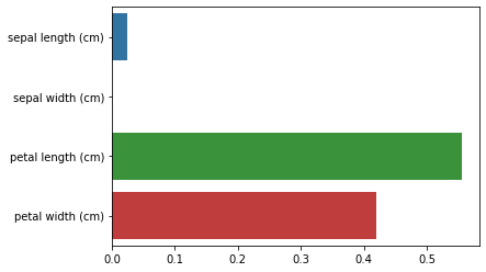 sns.barplot(x=dt_clf.feature_importances_ , y=iris_data.feature_names)