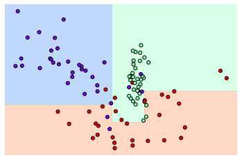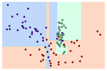 # 특정한 트리 생성 제약없는 결정 트리의 Decsion Boundary 시각화.