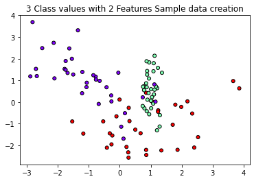 plt.title("3 Class values with 2 Features Sample data creation")