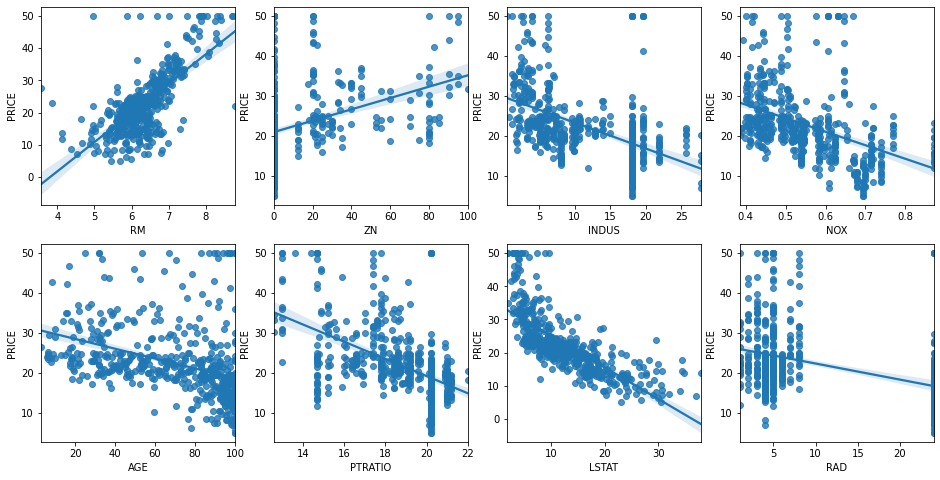 lm_features = ['RM','ZN','INDUS','NOX','AGE','PTRATIO','LSTAT','RAD']
