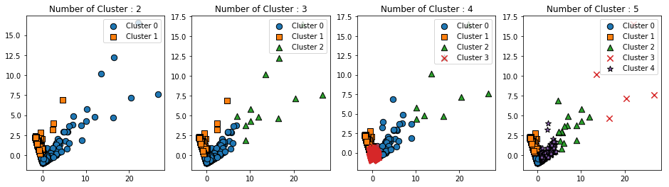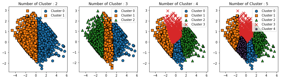 axs[ind].set_title('Number of Cluster : '+ str(n_cluster))