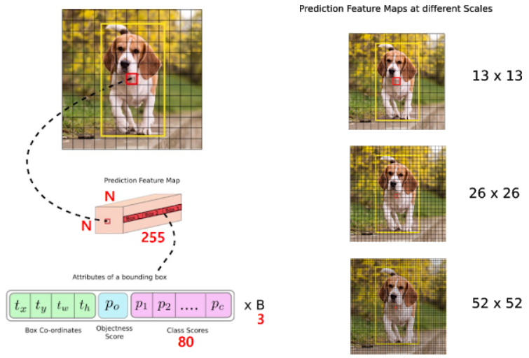 #전체 Darknet layer에서 13x13 grid, 26x26, 52x52 grid에서 detect된 Output layer만 filtering