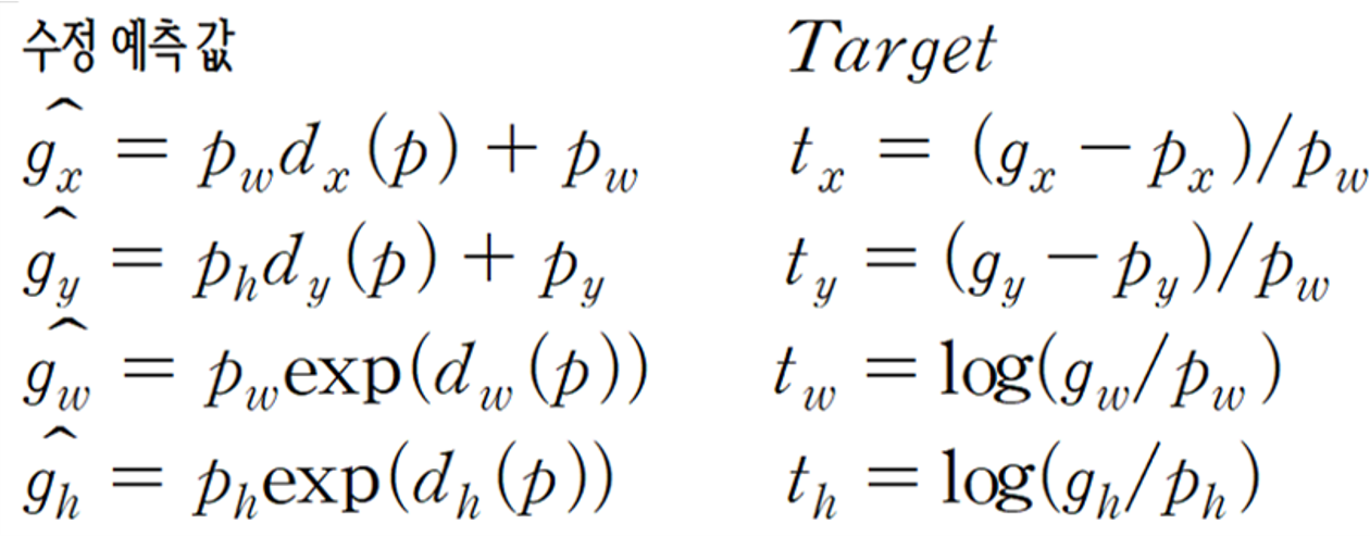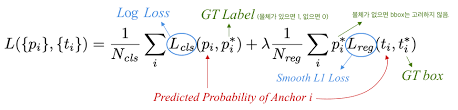 - RPN Bounding Box Regression은 Anchor Box를 Reference로 이용하여 Ground truth와 예측 Bbox의 중심좌표 x, y 그리고 w, h 의 차이가 Anchor box와 Ground Truth 간의 중심 좌표 x,y,w,h 차이와 최대한 동일하게 예측 될 수 있어야 함.