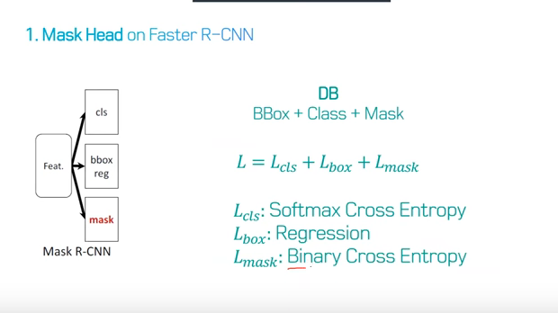 - k개의 정해진 class에 대해서 그 class에 pixel이 속하는지 그렇지 않은지 sigmoid로 결정 binary-cross-entropy-loss