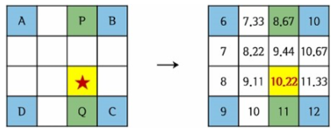 - 개별 point에서 가장 가까운 feature map Grid를 고려하면서 포인트를 weighted sum으로 계산