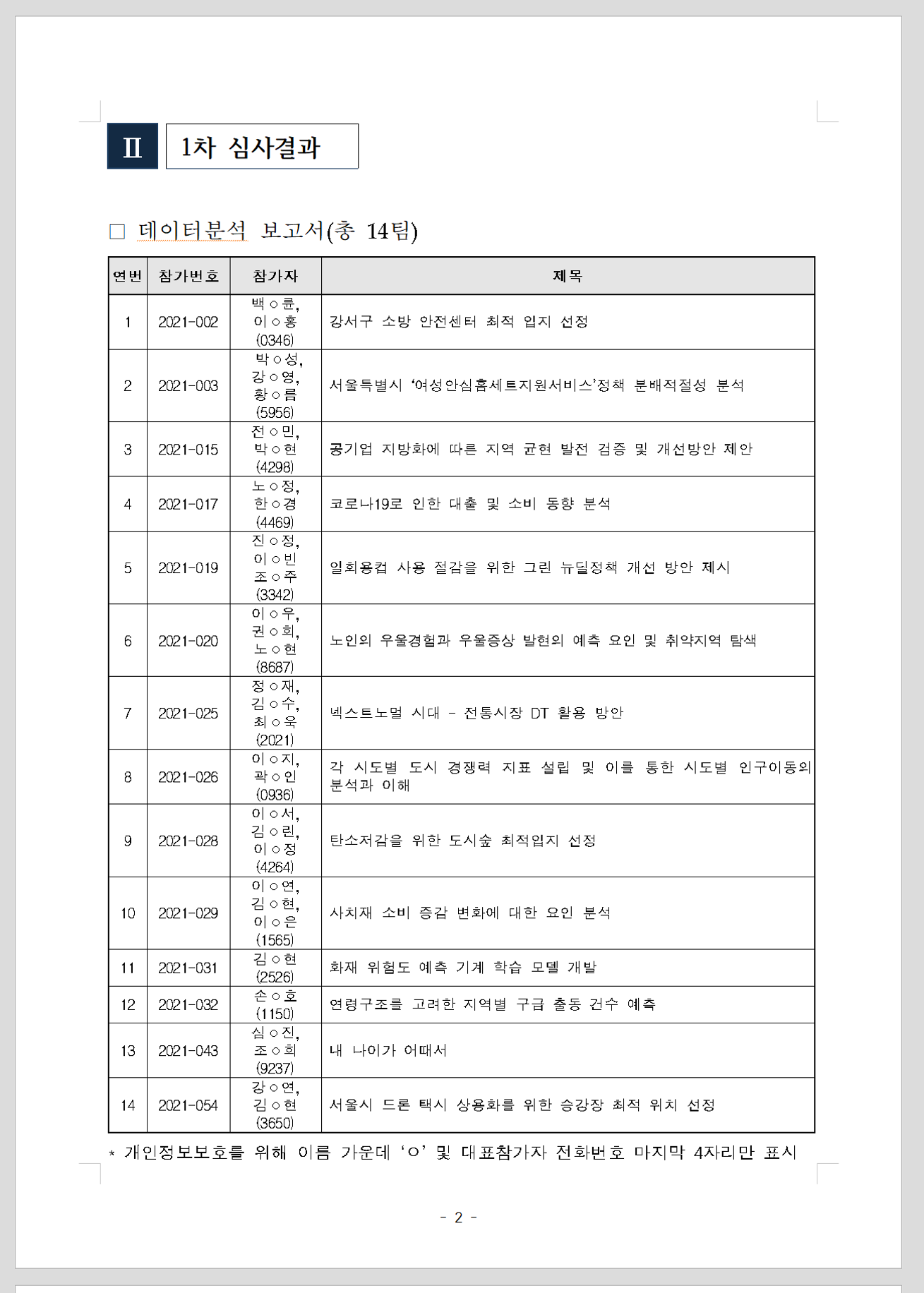 - 통계데이터센터 발 분석보고서 150여개 팀 중 7개팀 이내에 들었다는 점