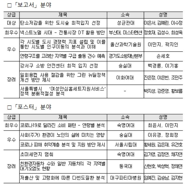 1) 경제정보센터 : 「2021년 통계데이터 분석·활용대회」결과 발표