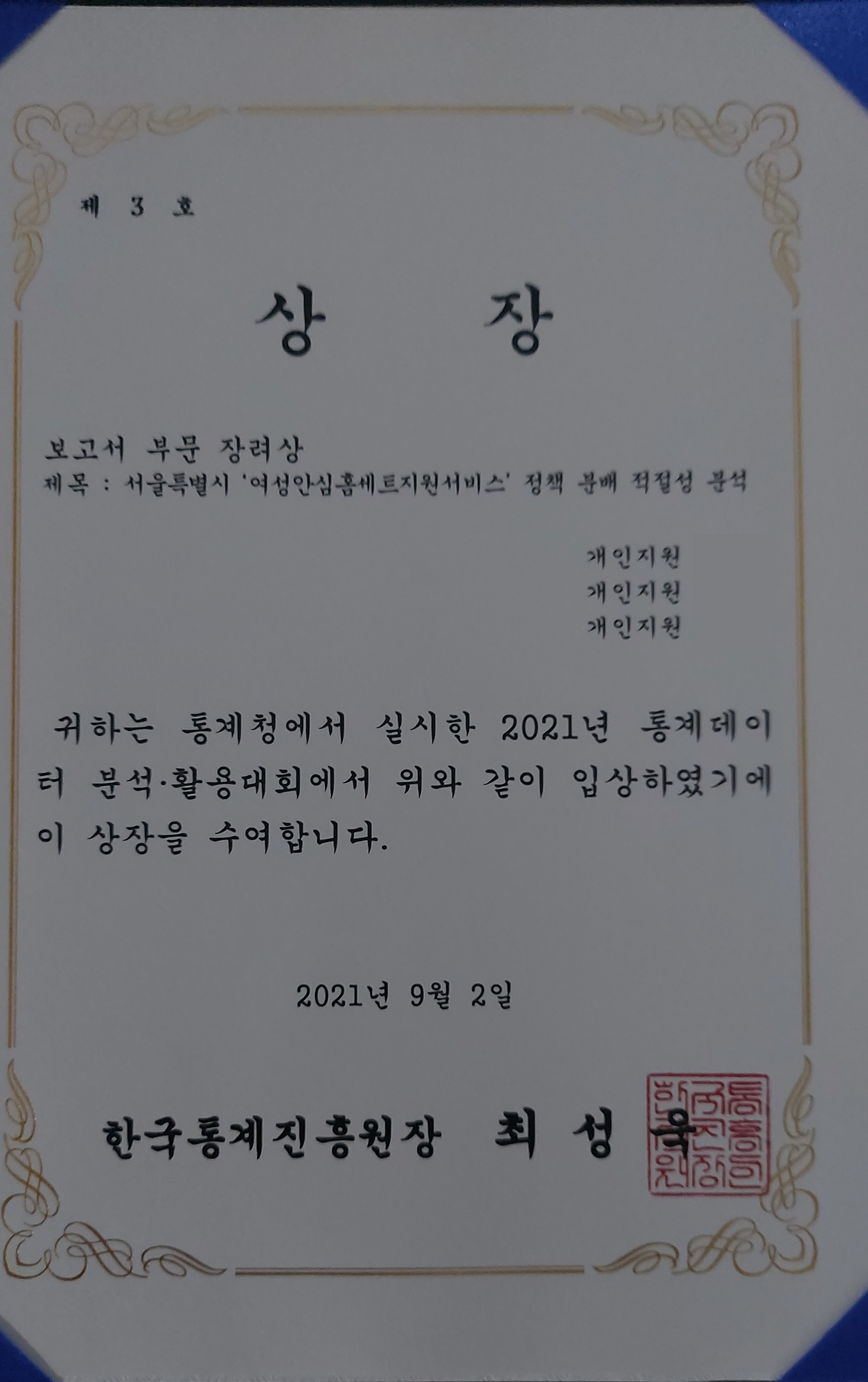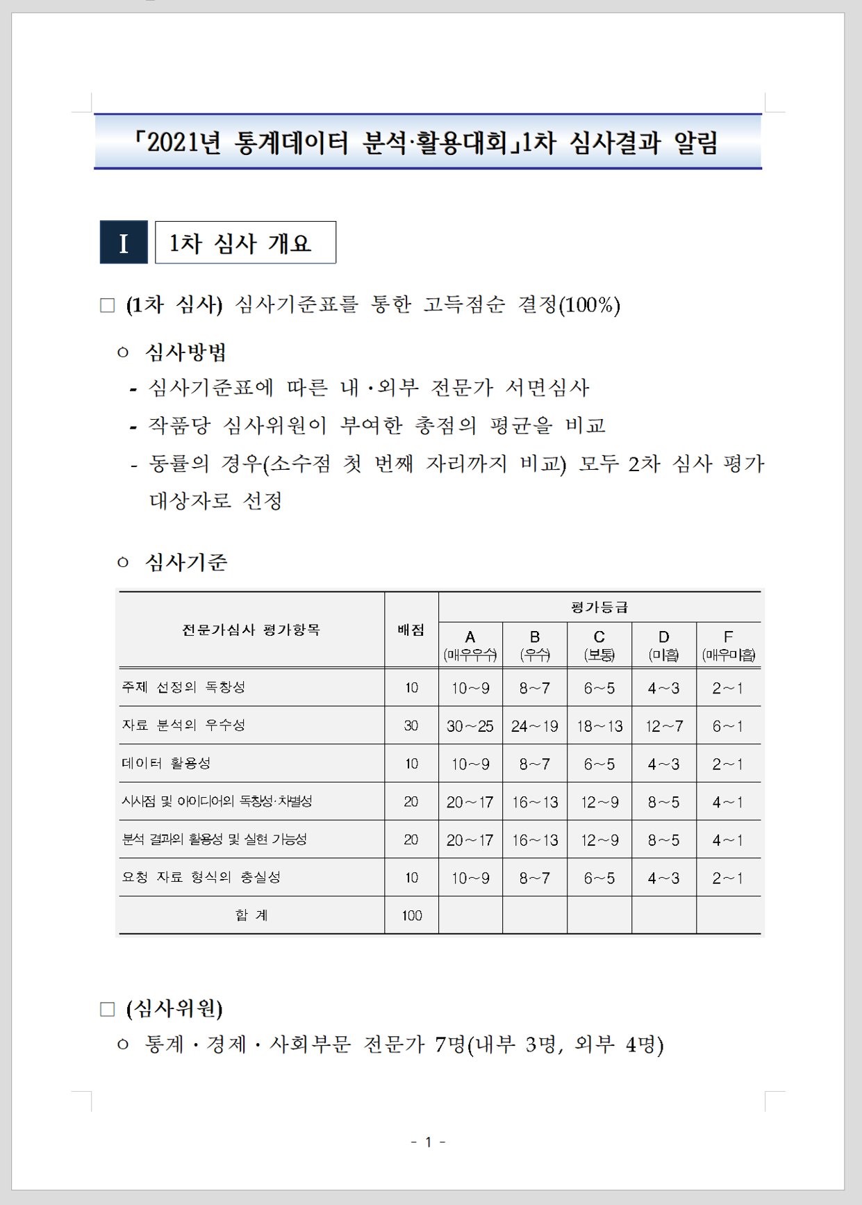 - 통계청 내외부 6명의 전문가가 평가하여 실력으로 인정하였다는 점